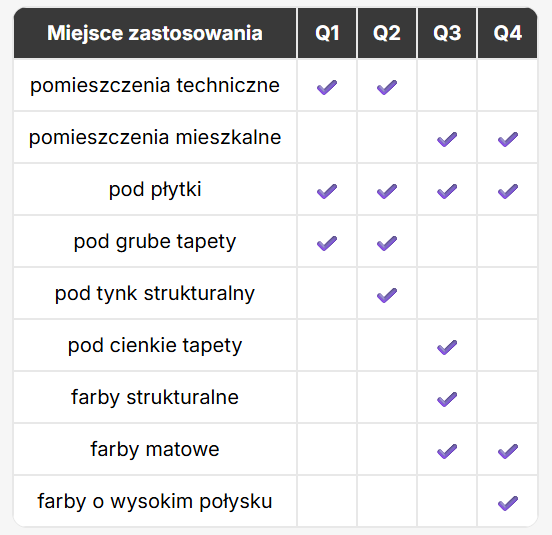 - Q1 – gdy estetyka nie ma znaczenia (płytki, pomieszczenia techniczne),