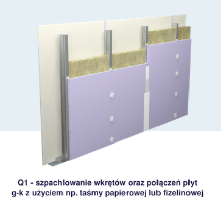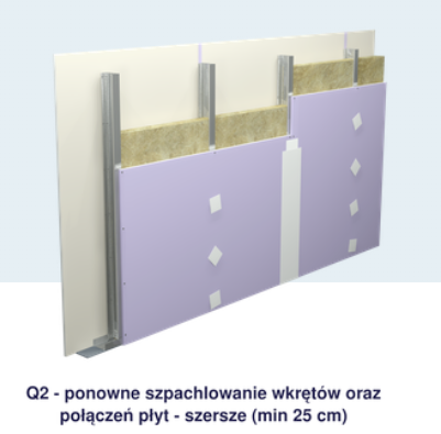 Q1 – szpachlowanie podstawowe – tożsamy z poziomem PSG 1 (PSG – Polskie Stowarzyszenie Gipsu)
